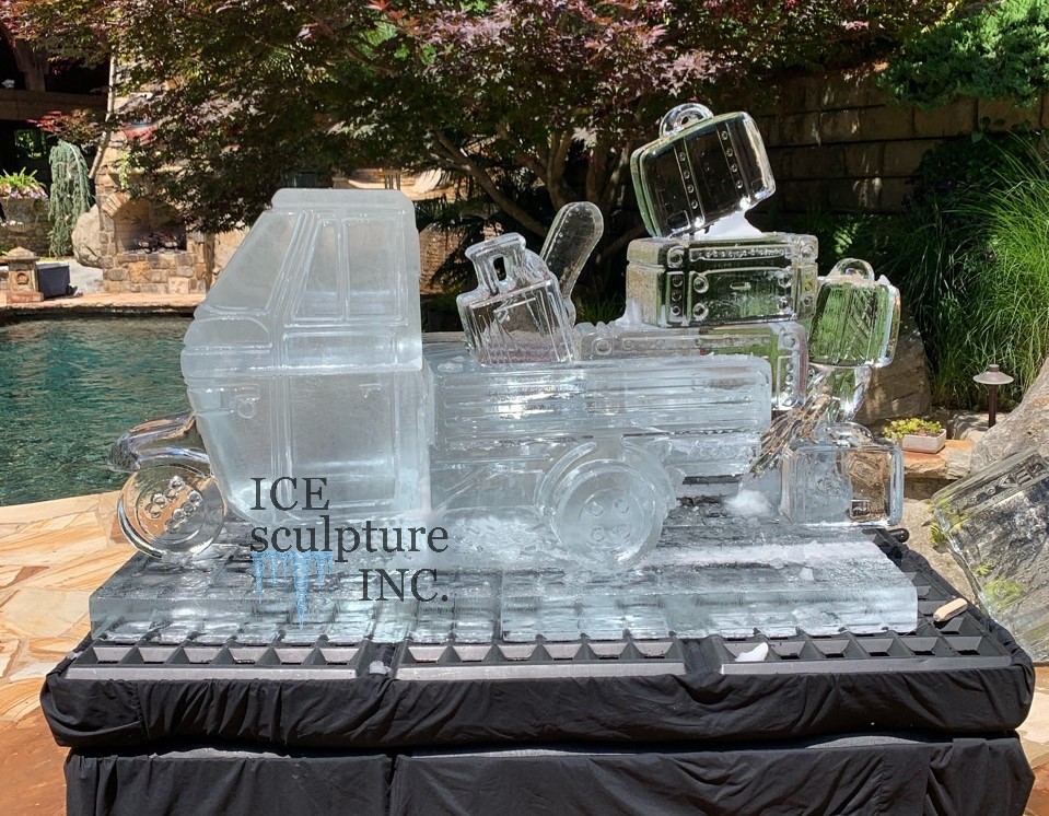 Our planes and trains ice sculptures transform complex vehicles into detailed ice replicas, showcasing technical skill and creativity for themed events and exhibitions.